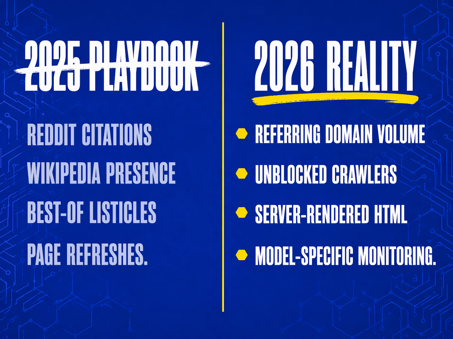 If your agency's pitch deck for 2026 looks a lot like their 2025 deck with a bunch of acronyms swapped, you're paying someone to not do the work. The brands that will get cited by name in ChatGPT answers next year are the ones doing the boring plumbing this year, and the ones that won't are still running the 2024 content playbook and hoping nobody notices.